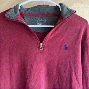 Polo Ralph Lauren pullover 1/4 quarter zip sweatshirt. Burgundy/wine color with navy embroided logo. Soft cotton blend. Size small.