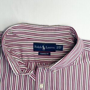 Elevate your style with this Polo Ralph Lauren button-down shirt, featuring a classic red, white, black, and yellow stripe pattern. The long-sleeved shirt is made of high-quality cotton material, ensuring both comfort and durability. The shirt also includes barrel cuffs and a button-down collar, adding a touch of sophistication to your outfit. Perfect for any casual occasion, this shirt is a must-have for any fashion-conscious man. The navy pony logo adds a touch of personality to the shirt, making it a great addition to your wardrobe. Available in size 2XLT, this shirt is perfect for big and tall men who want to look their best.
