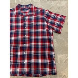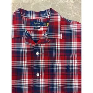 Polo Ralph Lauren Men's Camp Shirt Classic Fit Size XL Red Plaid Oxford. Condition is Pre-owned. Shipped with USPS Ground Advantage.