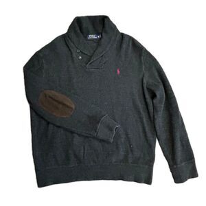 Polo Ralph Lauren Men's Charcoal Gray Shawl Collar Elbow Pads Pullover Size XL
