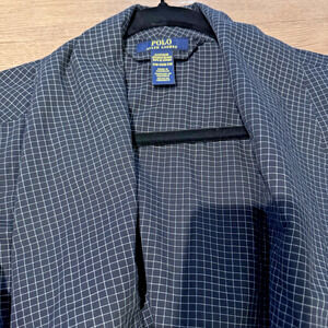 Polo Ralph Lauren Mens Checkered 100% Cotton Robe Sleepwear S/M 45" Black Pony