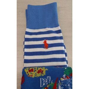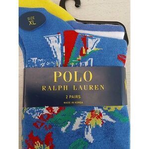 Polo Ralph Lauren Mens Crew Socks Polo Paradise Print Blue 2-Pair Sz XL 13-16