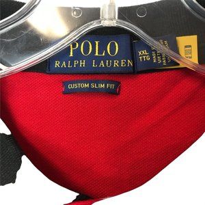 Polo Ralph Lauren Men's Custom Slim Fit Short Sleeve Polo (Size XXL) 100% Cotton Color: Red/Black/White Button closure Machine wash New w/ tags Features: • Polo Shirt Size: Mens XXL Condition: New With Tags New w/ tags