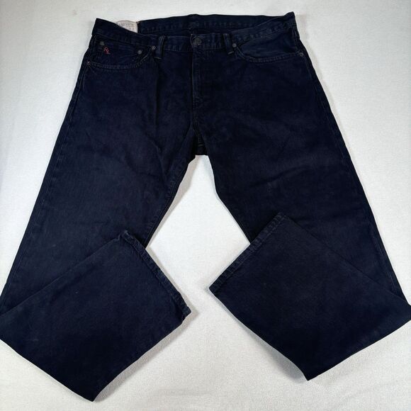Polo Ralph Lauren Mens Dark Black Hampton Straight Leg Denim Jeans 35x30