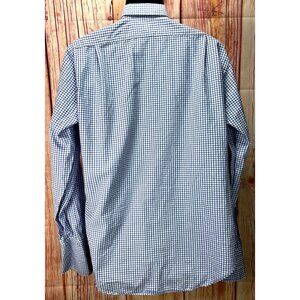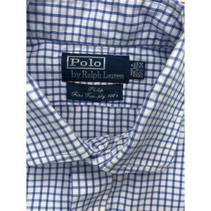This Polo Ralph Lauren dress shirt exemplifies classic style and impeccable tailoring. Crafted from fine two-ply 100's cotton, it features a sophisticated blue and white checkered pattern. Ideal for professional settings, its cufflink cuffs and crisp collar add a polished touch to any ensemble.