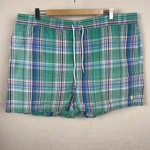 Polo Ralph Lauren Men's Green Multi Color Plaid Pattern Cotton Blend Trunks XXL