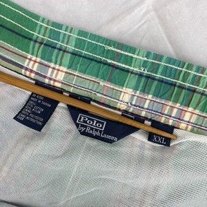 For sale is this Authentic Polo Ralph Lauren Men's Green Blue Tartan Pattern Cotton Blend Trunks XXL In excellent condition!!! Measurements: Waist 21in Inseam 4in Front Rise 13in Back Rise 17.5in