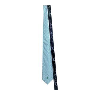 Polo Ralph Lauren Mens Green/White Cotton Striped Tie Embroidered Logo USA Made