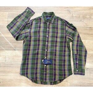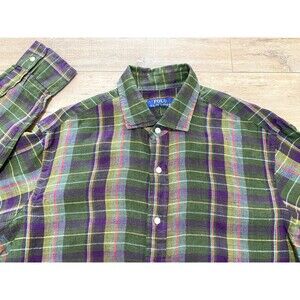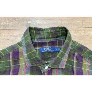 Polo Ralph Lauren Mens L Classic Plaid Linen Long Sleeve Button Up Casual Shirt