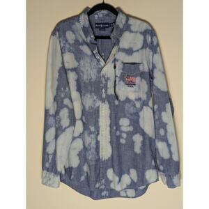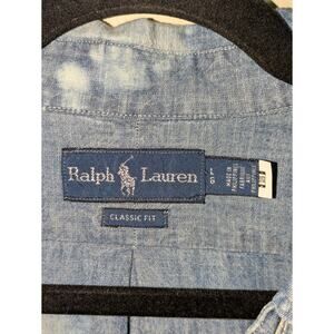 Polo Ralph Lauren Men’s Large Classic Fit Historical Embroidered American Flag Logo Chambray Distressed Button Down Shirt