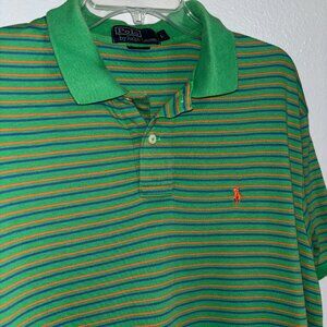 Polo Ralph Lauren Mens L Green Orange Blue Stripe Polo Shirt Short Sleeve Cotton