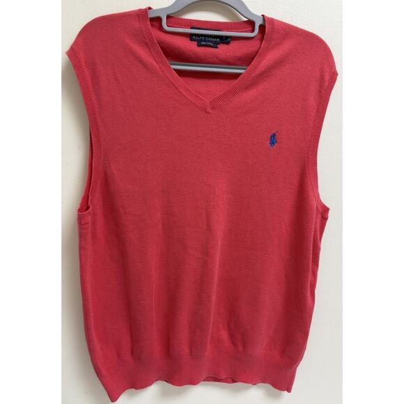 Polo Ralph Lauren Mens L Sweater Vest Coral Pink Pima Cotton V Neck Pullover