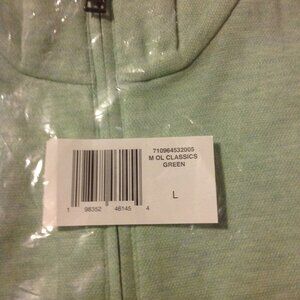 Up for sale is a brand-new men's double knit Jacquard light green 1/4 zip pullover shirt, USA size large.