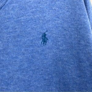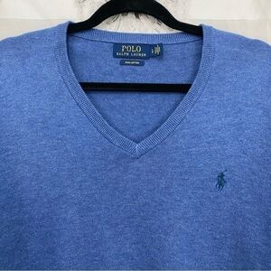 Polo Ralph Lauren Mens Large Solid Blue Sweater V Neck Long Sleeve Pima Cotton