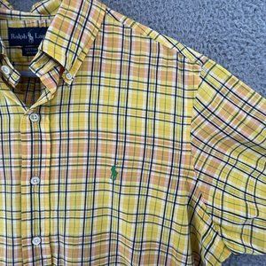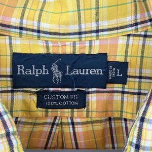 Polo Ralph Lauren Mens Large Windowpane Plaid Button Up L/S Shirt Vintage 1990s