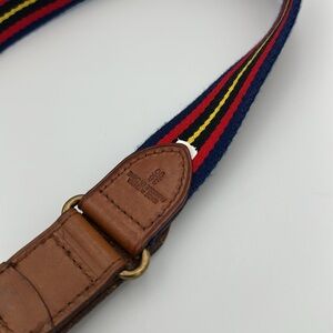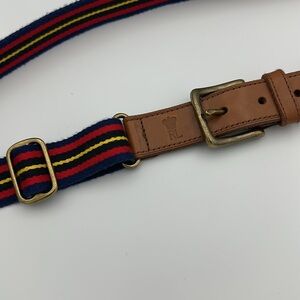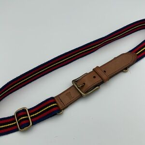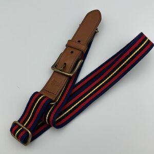 Polo Ralph Lauren Men's Leather Trim Striped Belt Navy Red Yellow Sz36