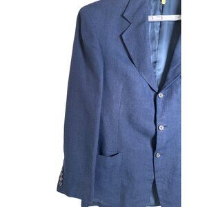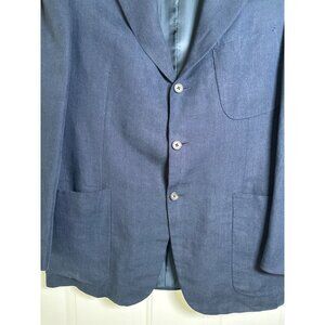 Elevate your style with the Polo Ralph Lauren Men's Linen Blazer in navy. This luxury jacket combines elegance with comfort, perfect for formal or casual occasions. There is no size or fabric tag on this blazer but quite sure it is 100% Linen. Made to wrinkle.