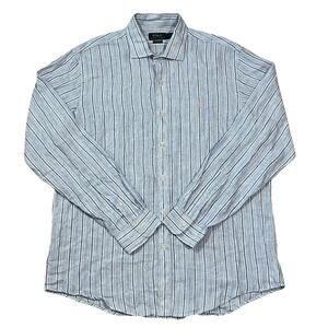 Polo Ralph Lauren Mens Linen Long Sleeve Blue Striped Button Up Shirt Size Large