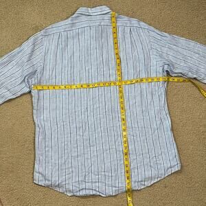 Polo Ralph Lauren Mens Linen Long Sleeve Blue Striped Button Up Shirt Size Large. Please see all images closely for condition. Measurements are provided as tags are not always accurate.