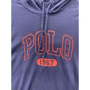 Polo Ralph Lauren Men's Long Sleeve Hooded Tee Shirt Large Navy Spell Out Preowned see all photos for details and measurements all measurements taken laying flat