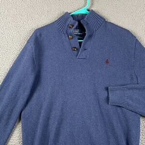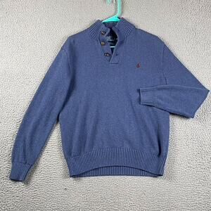 Polo Ralph Lauren Men's M Blue Mock Neck Sweater 1/4 Button Placket 100% Cotton