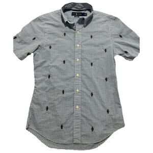 Polo Ralph Lauren Men’s M Button Down Bear All Over Print Gingham Slim Fit