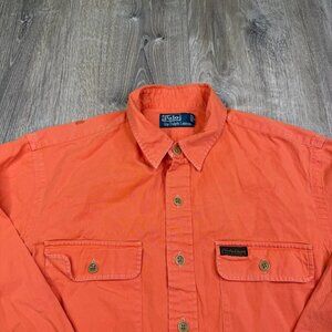 Polo Ralph Lauren Mens Orange Long Sleeve Button Up Workwear Shirt Size Large
