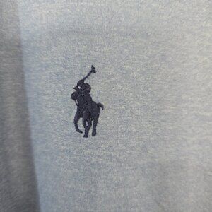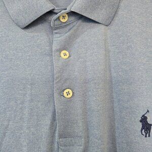 Excellent condition men's Polo Ralph Lauren Performance short-sleeve 3-button polo shirt. Color is light heather blue. Fabric content tag has been removed. Size is XL.