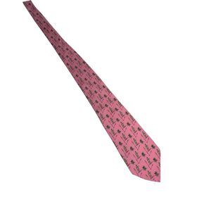 Keywords: Polo Ralph Lauren, men's tie, pink tie, silk tie, geometric pattern, golf theme, Italian made, classic width, classic length, handmade tie, pre-owned tie.