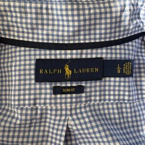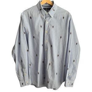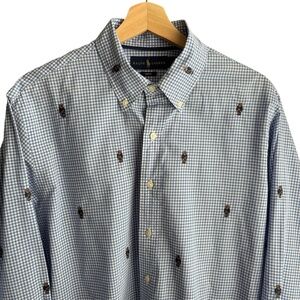 Polo Ralph Lauren Men's Polo Bear Gingham Cotton Shirt Sz L Slim Fit Embroidered