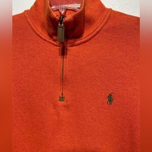 Polo Ralph Lauren Mens Quarter Zip Pullover Sz L Orange Pony
