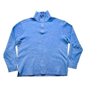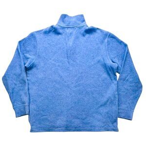 This Polo by Ralph Lauren men’s pullover sweater is crafted from soft 100% cotton in a heathered blue tone. It features a quarter-zip neckline with a leather pull tab, ribbed cuffs, and the signature embroidered Pony logo at the chest. Designed in a Big & Tall fit, size 4XB, this piece offers a relaxed silhouette perfect for layering.