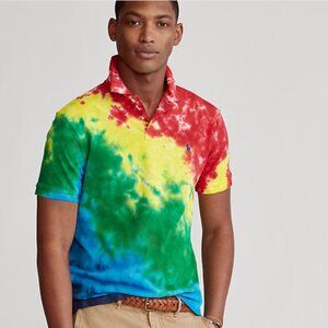 Polo Ralph Lauren Mens Rainbow Tie Dye Polo Shirt NWT Size Large Custom Slim Fit
