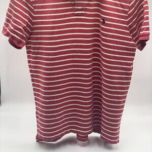 Polo Ralph Lauren Men's Red & Beige Stripes w/ Navy Blue Logo, Large Custom Fit