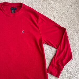 Like new mens red long sleeve thermal/ waffle knit fabric of shirt
