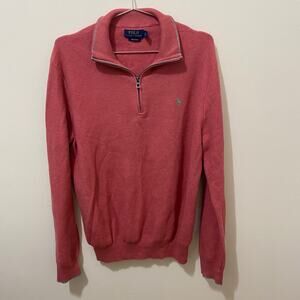 Polo Ralph Lauren Men’s Red Sky Heather 1/4 Zip Jumper Sweater Logo Size Large