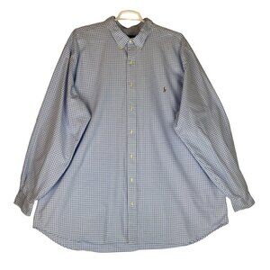 Polo Ralph Lauren Mens Shirt 4XLT Blue White Checkered Button-Down Preppy