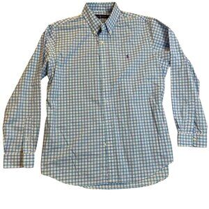 Polo Ralph Lauren Mens Shirt Large Blue Green Plaid Long-Sleeve Button-Down 100%