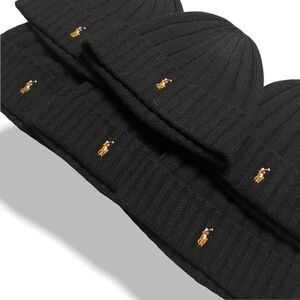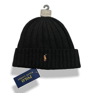 Polo Ralph Lauren Mens Signature Merino Wool Cuffed Beanie Black One Size (b) New with Tags