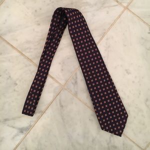 Excellent condition! This 100% silk men’s neck tie by Polo by Ralph Lauren is a beautiful navy with a deep red, gold and green square pattern on it. Make an offer today!