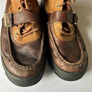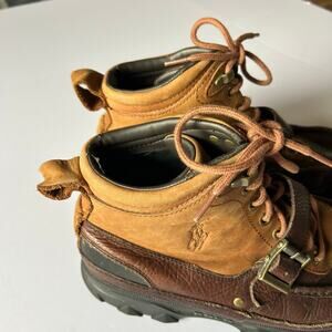 Polo Ralph Lauren Mens Size 11D Heworth Brown Leather Upper Boots Preppy. Leather upper and synthetic lining. Slight creasing and exterior wear, but in overall excellent condition.