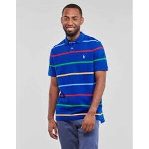 This Polo Ralph Lauren Men's Size XXL Blue Classic Fit Striped Mesh Polo Shirt is a stylish and versatile addition to any man's wardrobe. Made from 100% cotton mesh fabric, this short sleeve polo features a collared neckline, button closure, and the iconic Polo Ralph Lauren logo accent. Perfect for casual occasions in the summer, fall, or spring, this classic fit polo is machine washable for easy care. Whether you're walking, playing golf, dancing, or driving, this polo shirt is sure to provide both comfort and style for the modern man.