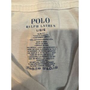 Keywords: Polo Ralph Lauren, men's T-shirt, size large, slim fit, white, short sleeve, crew neck, casual wear, breathable, lightweight, logo accent, machine washable, pre-owned, India.