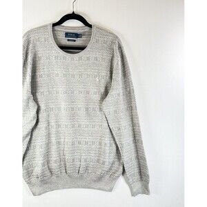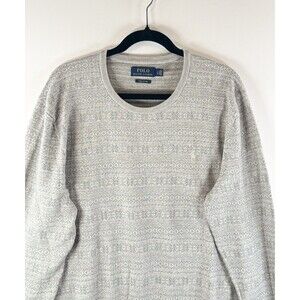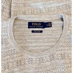 Polo Ralph Lauren Mens Sweater Gray Pima Cotton Fair Isle Knit Pullover Large