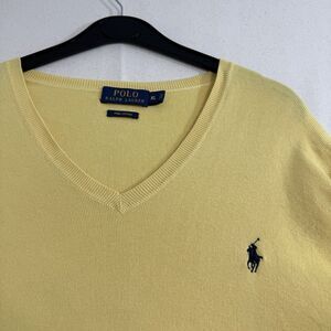 Polo Ralph Lauren Men's Sweater Yellow Pima Cotton V-Neck Logo Pullover X Large