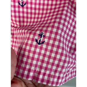 Color: Red & White Gingham Check with Navy Anchor Embroidery