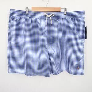 Polo Ralph Lauren Mens Swim Trunks Blue White Gingham Check Size 4XB NWT