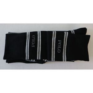 Polo Ralph Lauren Men's Sz 10-13 Black/Gray/Striped 3-Pair Casual/Dress Socks