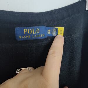 Polo Ralph Lauren men's black fleece lined sweat pants. Pull on, tie waist. Ties at the ankle too.