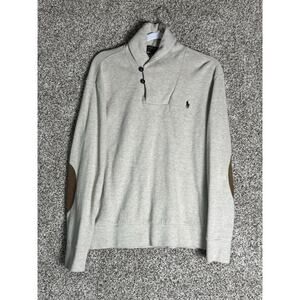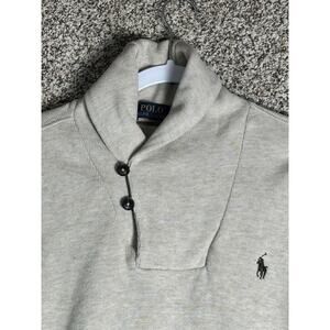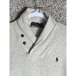 Polo Ralph Lauren Mens Sz M Shawl Collar Sweater Beige Cotton Knit Elbow Patches